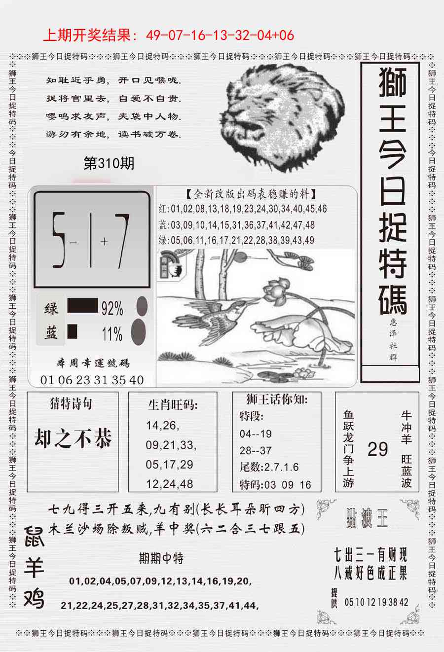 310期:澳门六合彩彩圖信封【狮王平特】每期自动更新